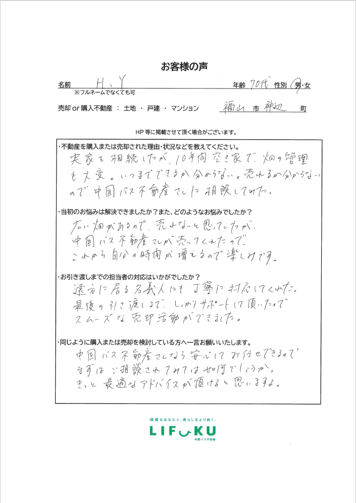 この度、福山市内で不動産売却のお手伝いをさせていただきましたお客様より御礼のお手紙をいただきましたのでご紹介させてください!